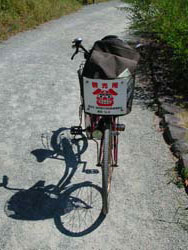 駅前で無料で貸してくれるパンク寸前のナイスなママチャリ。