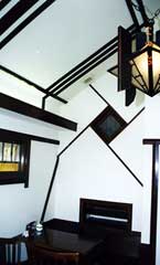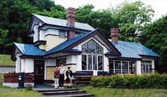 いかにもメルヘンチックなこれは、F・L・ライトの弟子で田上義也の作品である。メルヘンチックになったのには訳がある。概要を話すと、解体される事が決まりこれを惜しんだ市民有志が声を上げ、時の市長を動かして移転保存が決まる。しかしながら、移転地で構造材が新材になる等、従来の材料は1割程度の利用となってしまった。これが大きく影響している事は否めない。この出来事を決起に、再度建物を見直そうと活動を始めたのが上記団体である。今は喫茶店としても活用されているその場所で、3人でお茶しながら建物の改修・保存利用・本土と札幌の違い・住民意識・技術・建物形状・維持の仕方等について話し込む。時間を掛けた、ゆっくりした話ができた事が、大変うれしかった。